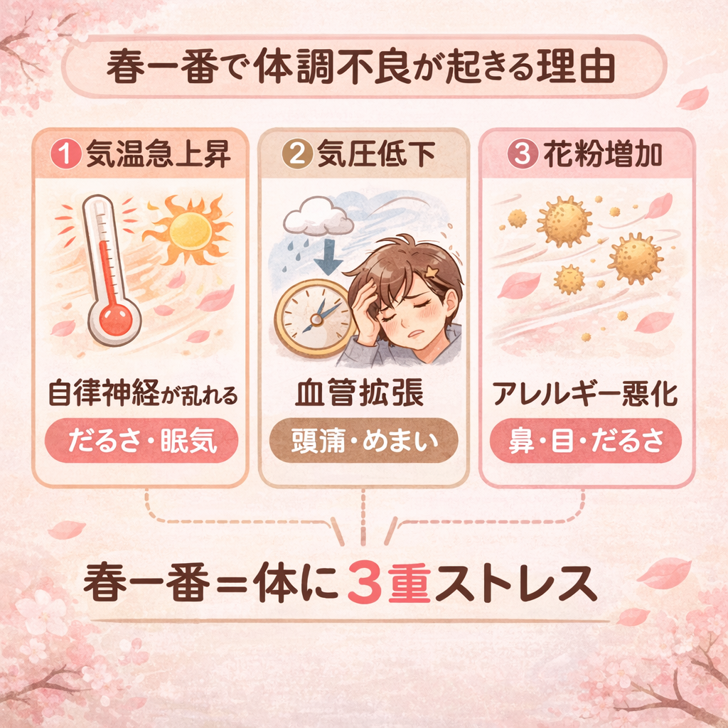 冬から春へ季節が変わる時期に吹く強い南風です。