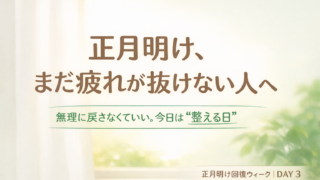 正月は終わった。仕事や日常も始まった。それでも――なんとなく体が重い、疲れが抜けない。実はこれ、あなただけではありません。年末年始は生活リズムの乱れ食べすぎ・飲みすぎ寒さによる自律神経の乱れが一気に重なります。1週間やそこらで完全に戻らなく...