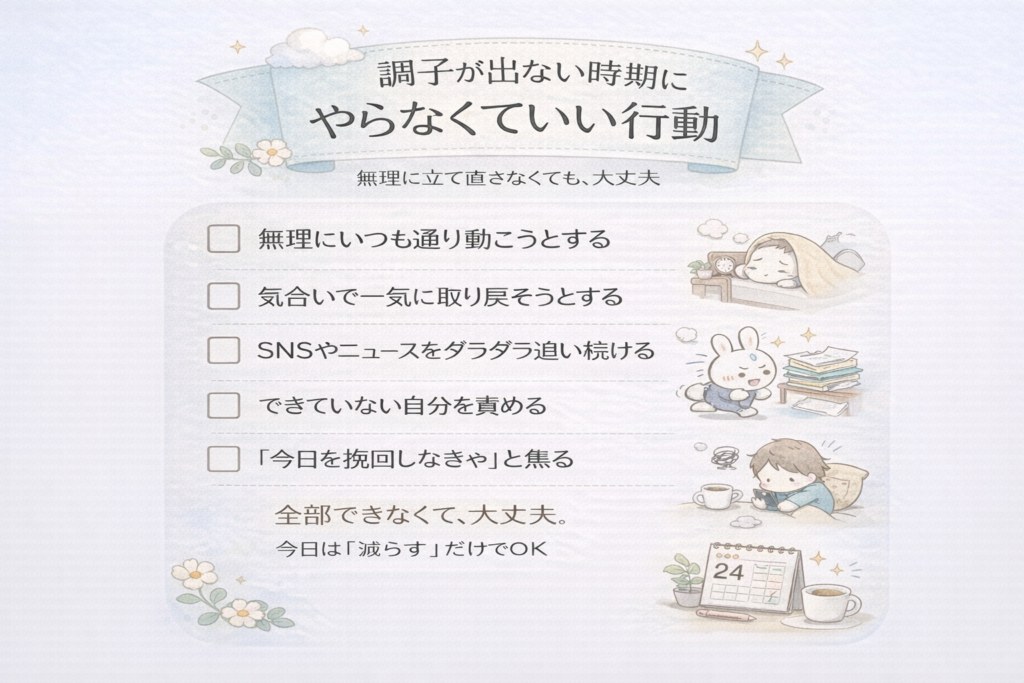 調子が出ない日にやらなくていい行動を整理してみます。