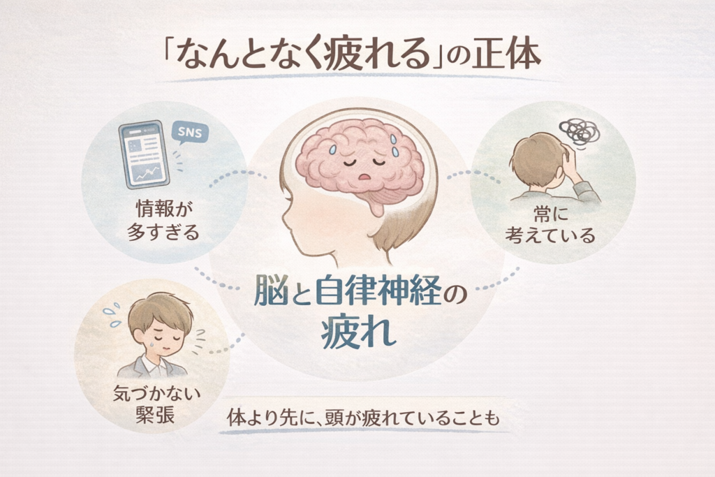 こうした状態は、体が弱っているというより“脳と自律神経が疲れているサイン” かもしれません。