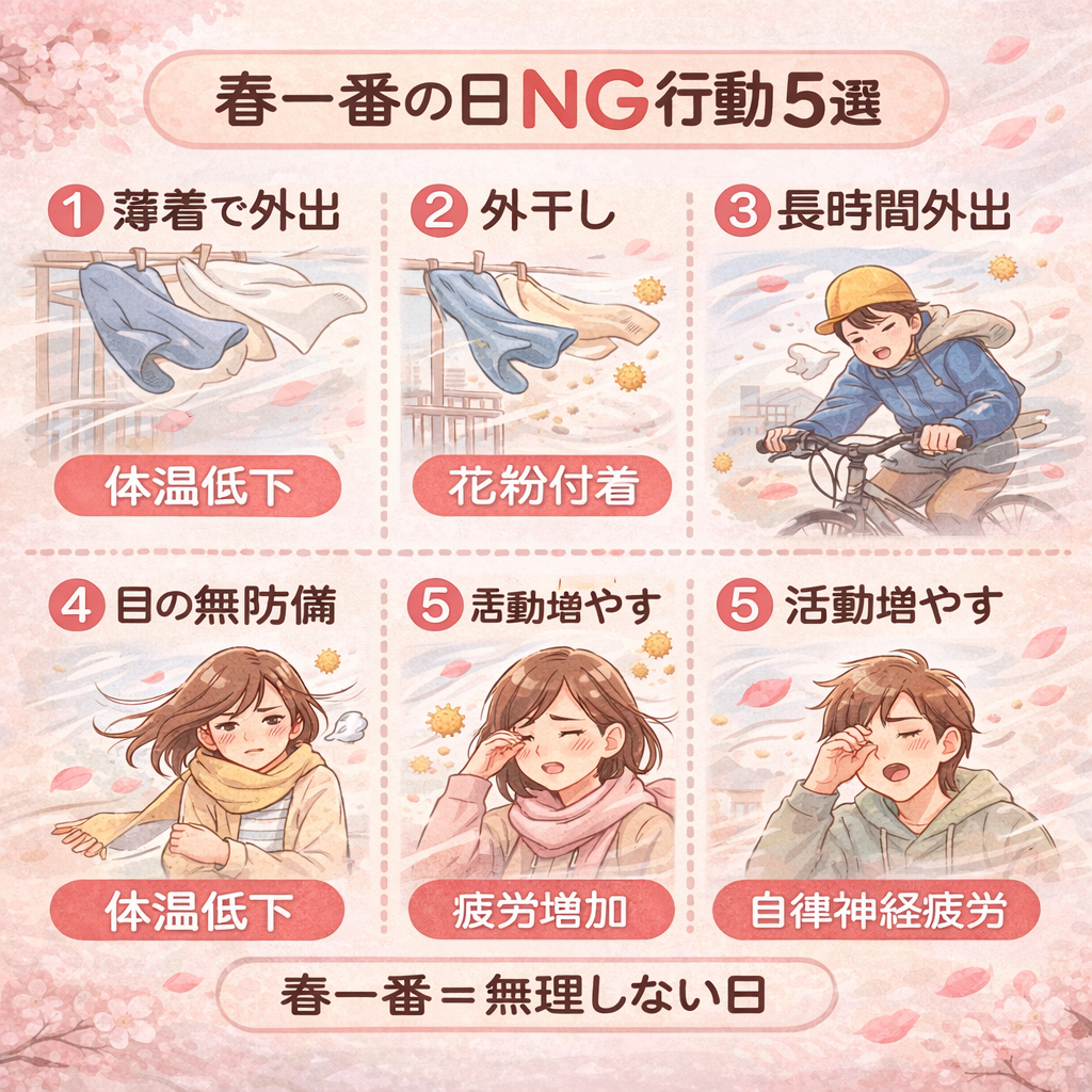 👉 春一番の日に避けるべき行動