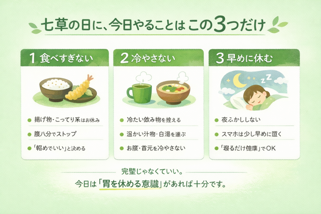 今日は “胃を休める意識” があれば、それで十分です。